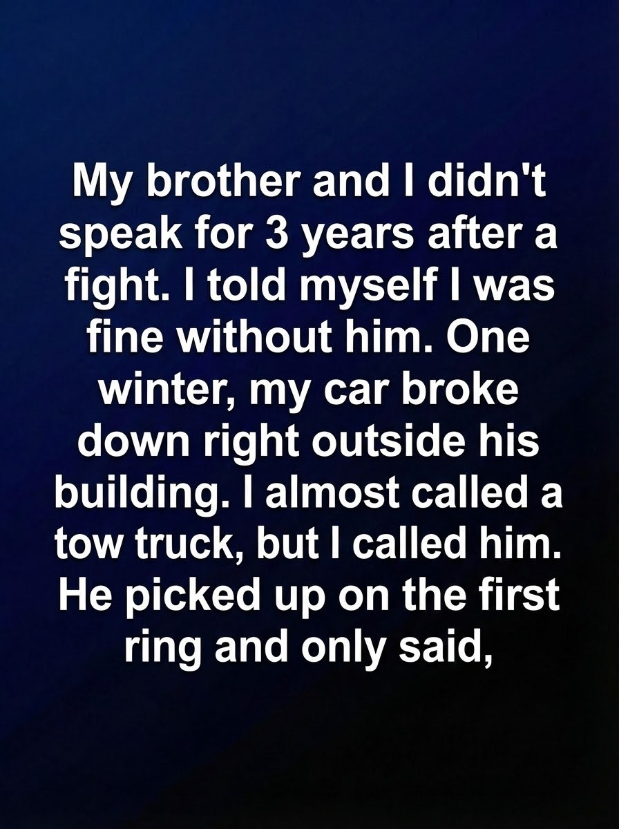 When he stepped outside, bundled against the cold, something loosened in my chest. He didn’t mention the fight. He didn’t ask why it took me three years to call. He helped push the car, made a few calls, and stood with me until everything was sorted. Later, we sat inside his place with warm mugs and awkward smiles, talking about small things first. The big things could wait. That night taught me something simple and powerful: time can stretch distance, but it doesn’t erase connection. Sometimes reconciliation doesn’t start with apologies or explanations—it starts with picking up the phone and finding out the line was never truly cut.