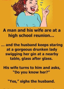 … and the husband keeps staring at a gorgeous drunken lady swigging her gin at a nearby table, glass after glass.