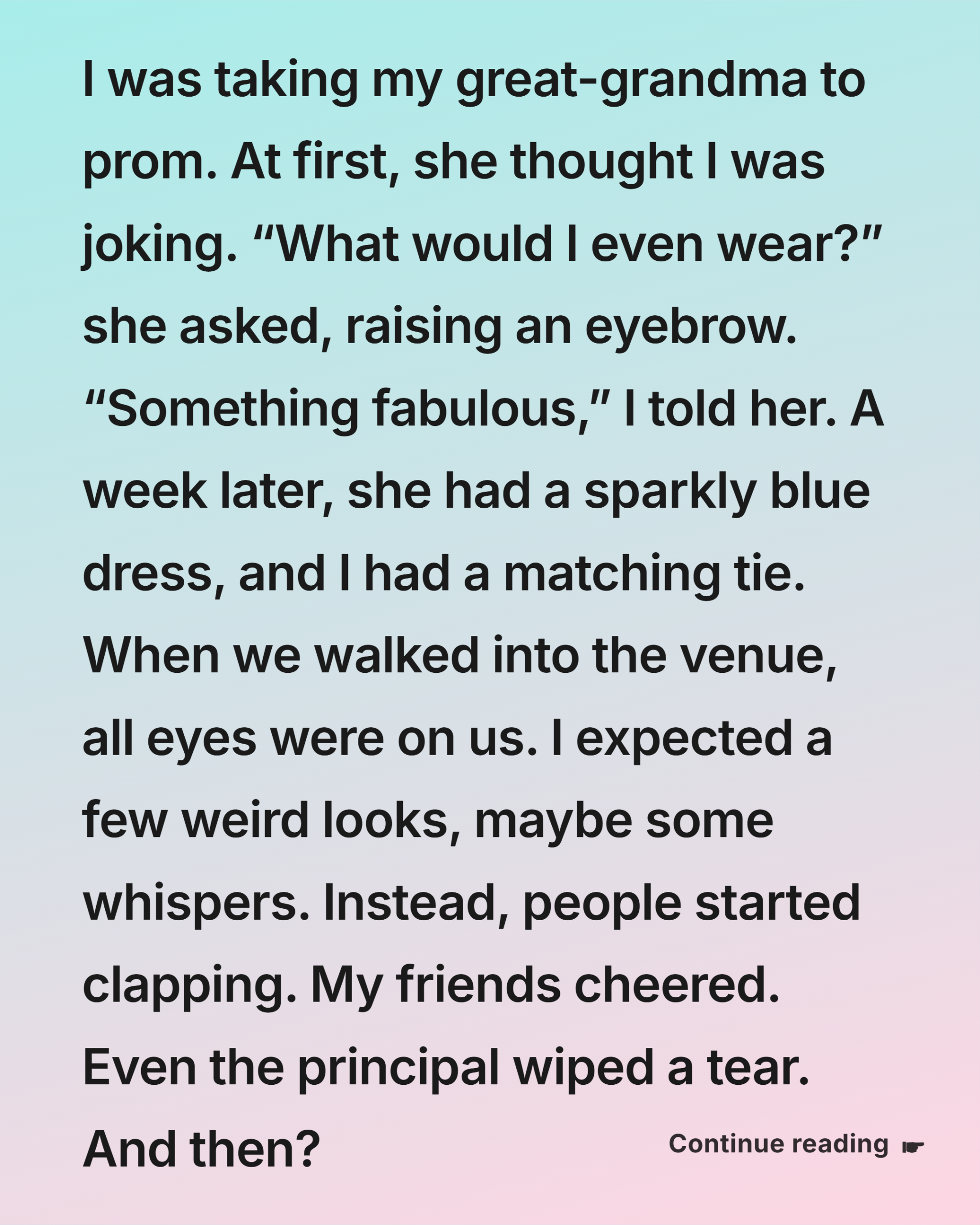 “Honey,” she said, “back in my day, girls like me didn’t get asked to prom.”