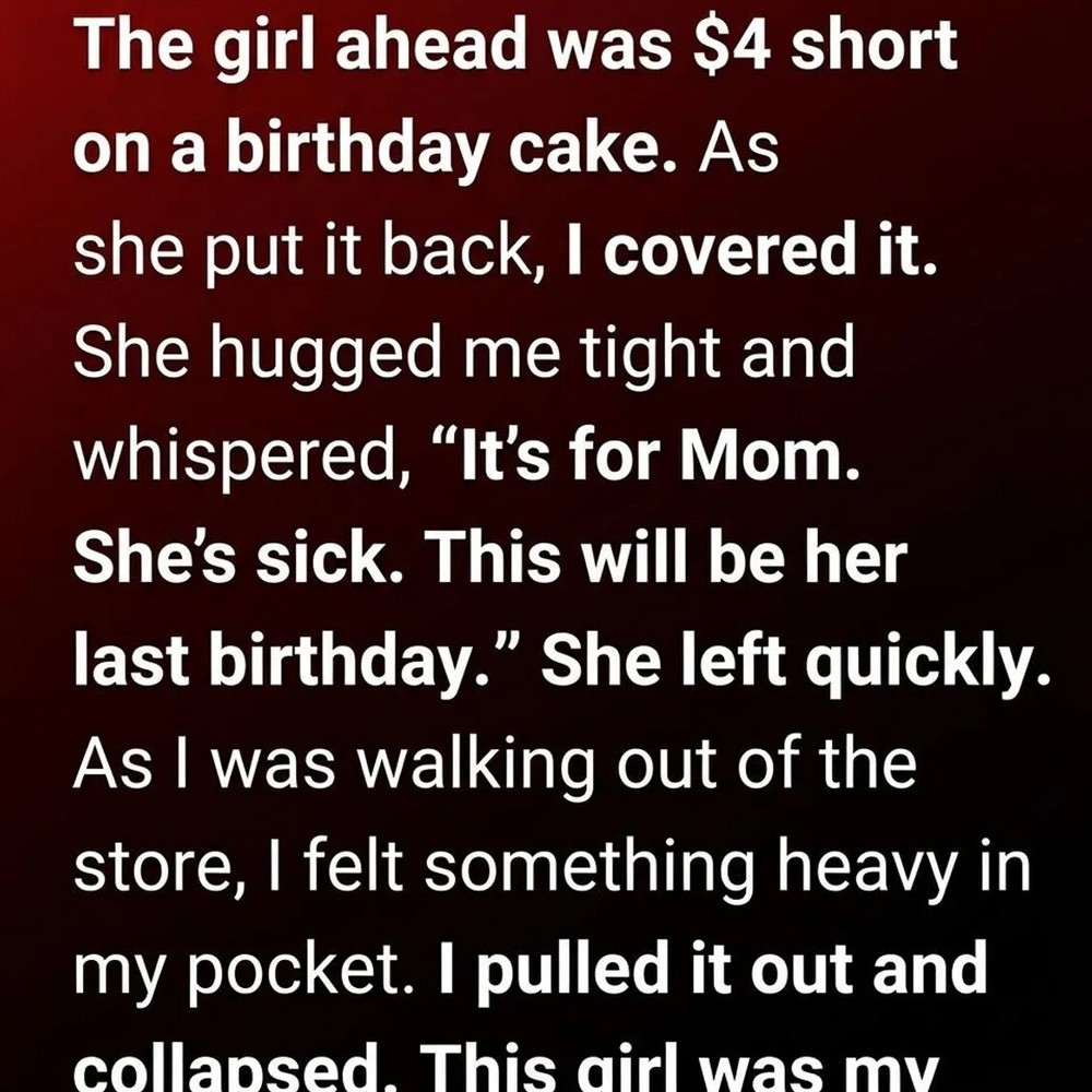 I stood in line, drifting in and out of my thoughts, when a young girl caught my eye. She couldn’t have been more than ten, and she held a small birthday cake carefully in both hands, as if it meant everything to her.
