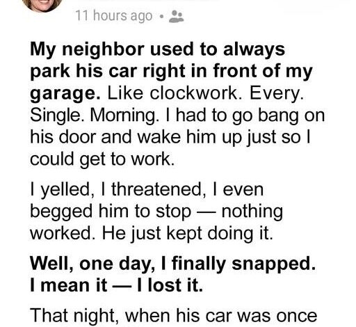 He was furious at first… until he admitted the truth: he wasn’t parking there out of necessity, but because he wanted a reason to talk to me.