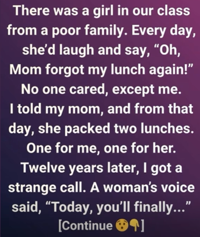 In school, there was a quiet girl named Annabelle who often joked, “Mom forgot my lunch again.” I knew she was struggling, so my mom started packing her an extra lunch every day.