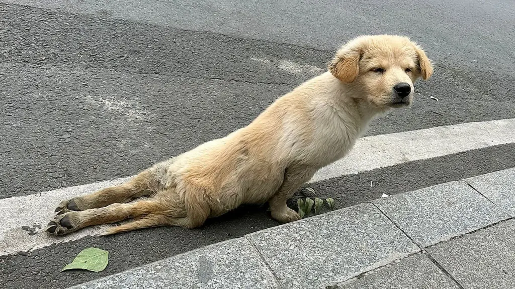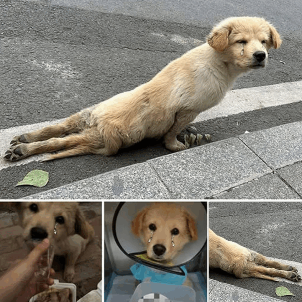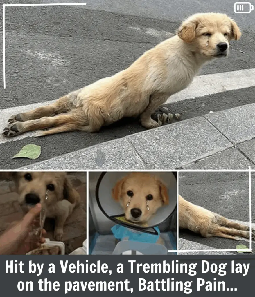 Yet, amidst this ordinary day, a small, trembling figure lay on the rough pavement, battling unbearable pain. A brave dog, its hind leg crushed and broken by a speeding car, fought for survival with every ounce of strength left in its frail body.
