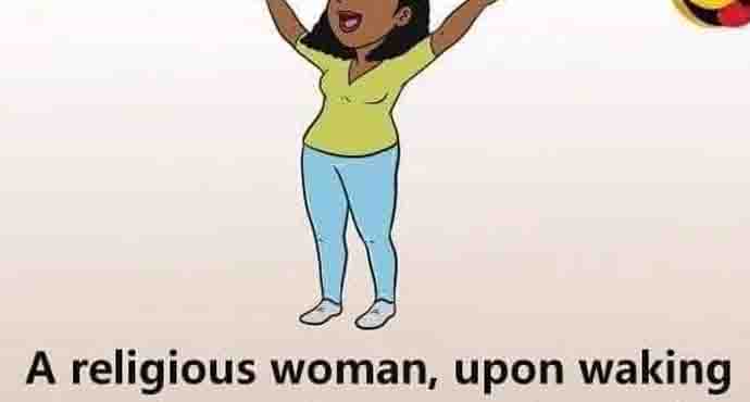 A religious woman, upon waking up each morning would open her front door, stand on the porch, and scream, “Praise the Lord.”