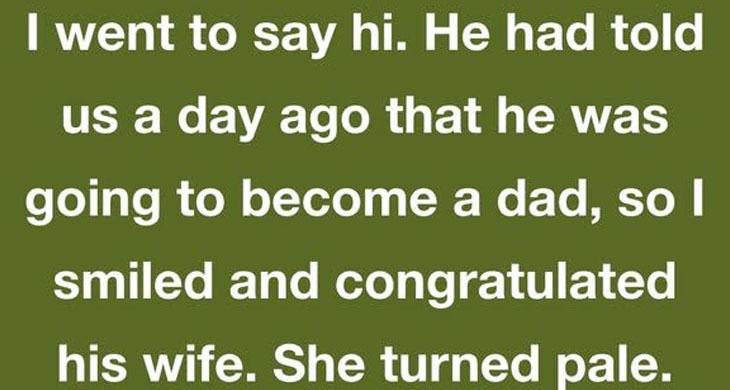 I saw my boss at a restaurant with his wife. I went to say hi. He had told us a day ago that he was going to become a dad, so I smiled and congratulated his wife. She turned pale.