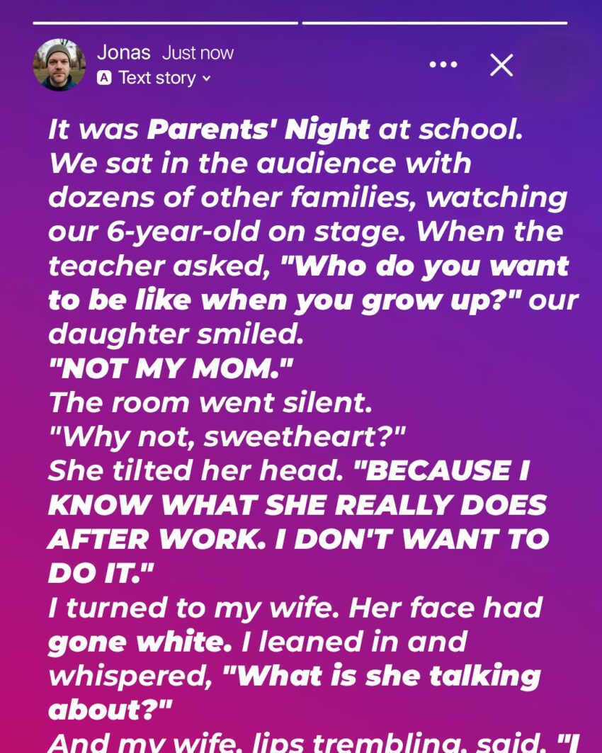 “Sweetie,” I said softly. “What did you mean tonight? About Mommy? What do you think she does after work?”