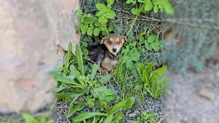 The kind-hearted humans rushed toward the bushes and found the pup, who was curled up in the corner. The canine’s eyes were filled with tears. He couldn’t stop trembling with fear.