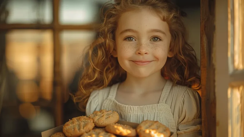 When I finally opened the door, there was a little girl, about eight years old, holding a basket of cookies. Her red hair and big green eyes looked eerily familiar.