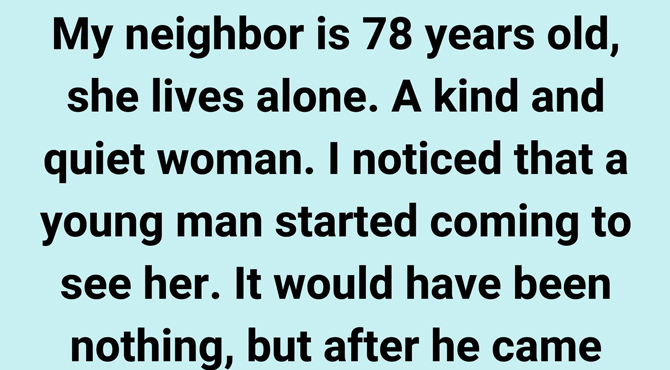 My neighbor is 78 years old, she lives alone. A kind and quiet woman. I noticed that a young man started coming to see her. It would have been nothing, but after he came I would hear screaming.