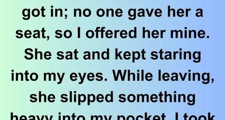 While leaving, she slipped something heavy into my pocket, and whispered in my ear, ’’Always put yourself and your child first! Otherwise, your life will be as heavy as this!’’ Then she quickly stepped off the bus.