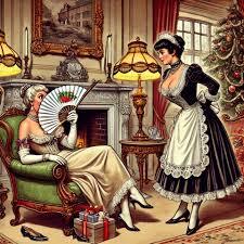The wealthy and self-important lady of the house was deciding on Christmas gifts with her maid.
