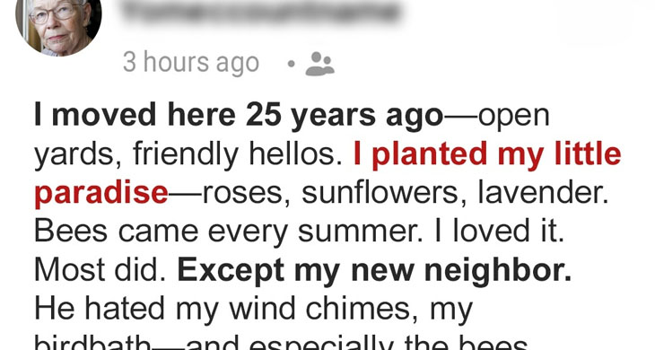 He especially despised the flower garden next door, which had been lovingly nurtured by the elderly grandmother who had lived there for decades. He claimed to hate the bees it attracted, calling them pests, but really, it seemed he just hated beauty and peace. When the grandmother tried to welcome him with a plate of cookies and a smile, he slammed the door in her face without a word. Soon after, without warning or permission, he poured cement over a portion of her flower bed that bordered his yard, sneering as he did it and muttering something cruel about “putting an end to the infestation.”