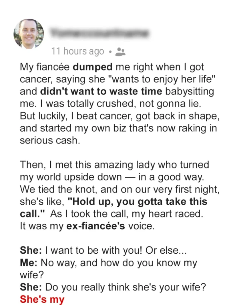 Hello?” I said. “James, I want to be back with you, or I’ll ruin your life,” Lisa threatened. “Remember, I know people who could easily damage your reputation and hurt your business.”I started recording the call. “How did you get my wife’s number?” I asked. “And how dare you threaten me? It was your decision to leave me!” I heard her laugh on the call. “Do you really think she’s just your wife? She’s my sister!”