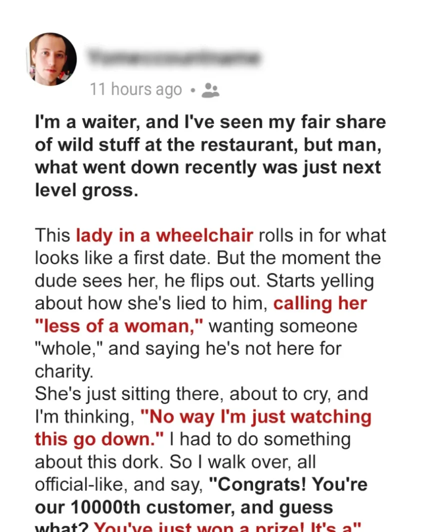 I went on a date with a guy from Tinder, and when we met for the first time, he rejected me as soon as he saw my wheelchair. However, our table was selected for a free dinner, so I spent the evening with him. Little did I know that the heartbreak had only just begun.