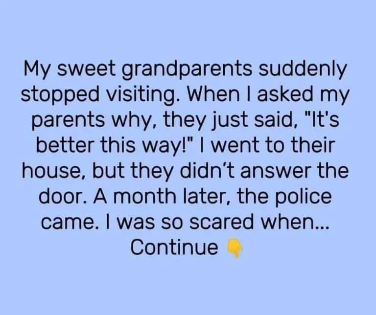 My sweet grandparents suddenly stopped visiting. When I asked my parents why, they just said, ’’We’re better off like this!’’ I went to their house, but they wouldn’t open the door. A month later, the police showed up. I was petrified when they arrested my mother.