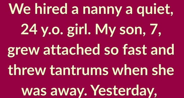 We hired a nanny — a quiet, 24 y.o. girl. My son, 7, grew so attached so fast and threw tantrums when she was away. Yesterday, I found a laminated photo of my son in her bag. At first, I thought it was sweet. But then, I turned it and froze in horror. She had written 2 words: “MY son.” I was confused and decided to wait until her next visit to ask what it meant.