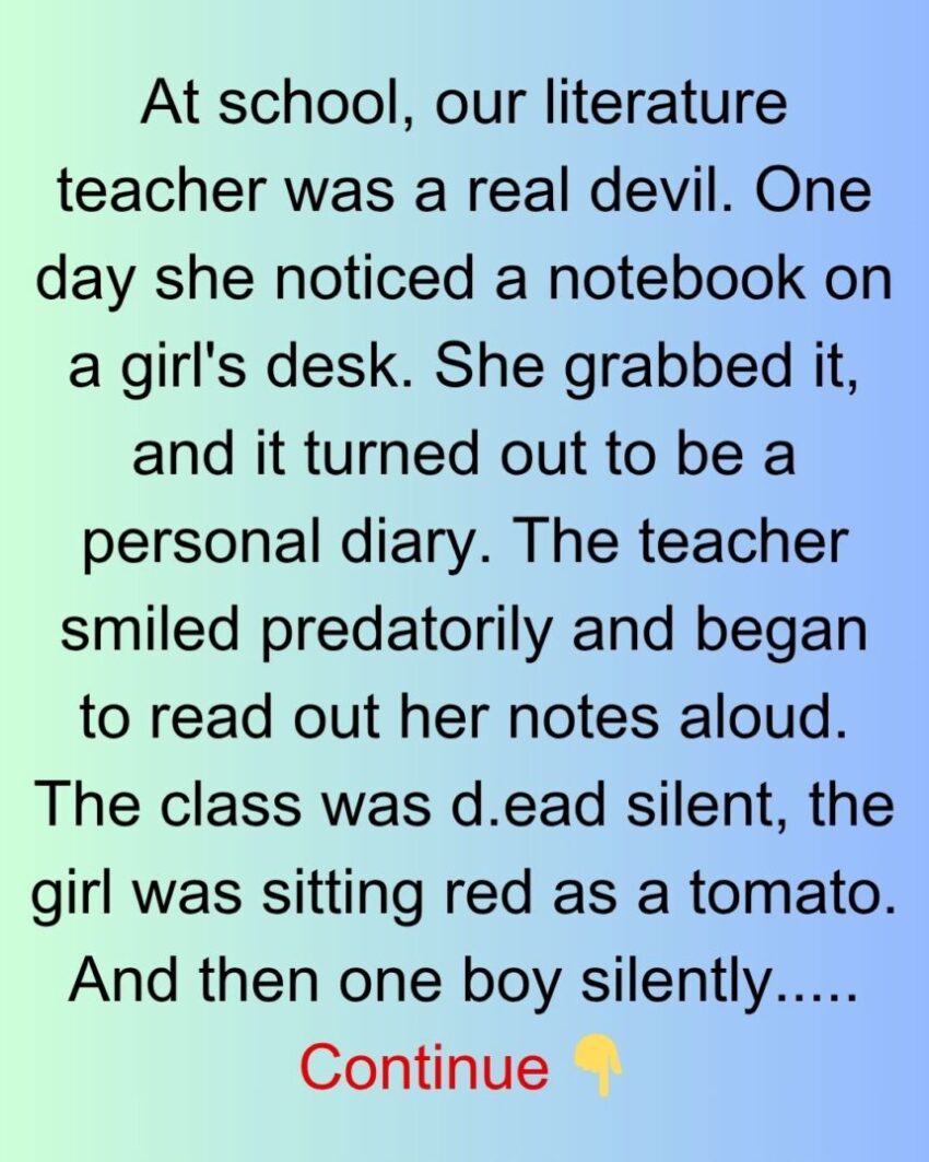 At school, our literature teacher was a real devil — strict, cold, and always looking for ways to assert her power.