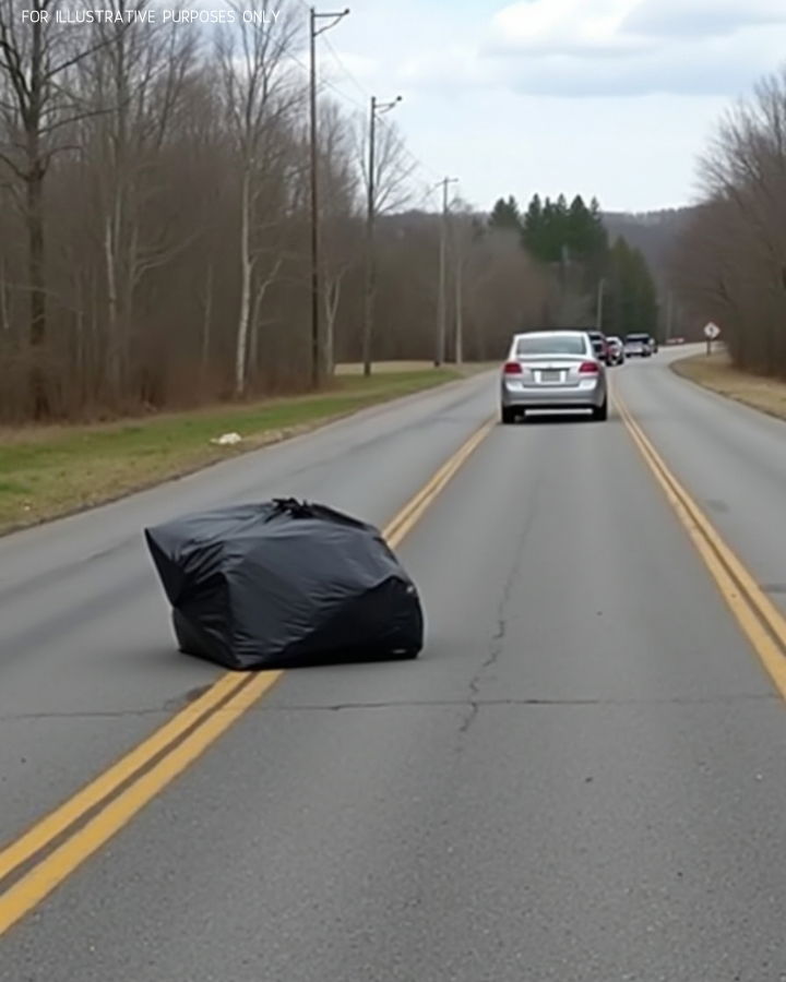 As he drew closer, he noticed the rear door of the car crack open, and in a flash, something was tossed onto the roadside. The door slammed shut, and the vehicle sped off into the misty rain.