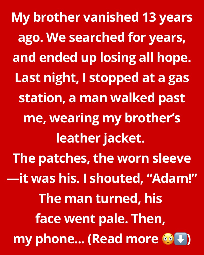 - My brother vanished 13 years ago. We searched for years and ended up losing all hope. Last night, I stopped at a gas station, a man walked past me, wearing my brother’s leather jacket. The patches, the worn sleeve—it was his.