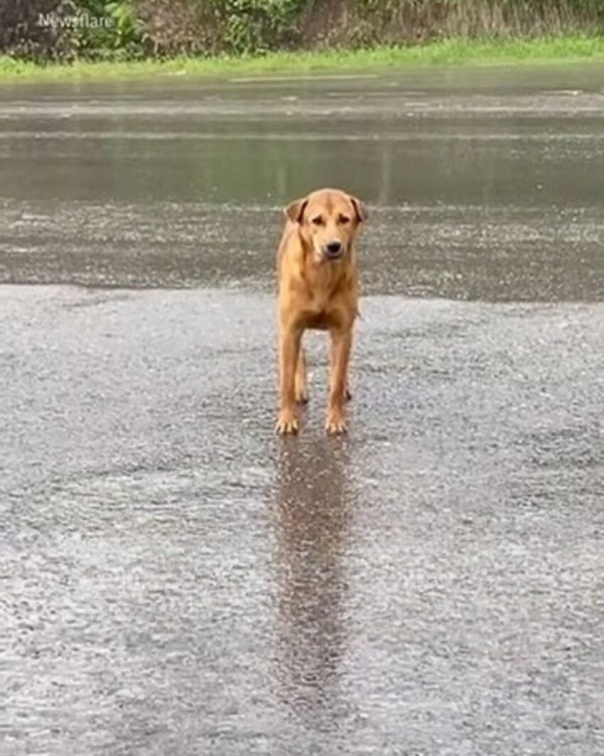 A canine who spent days on a roadside in the heavy rain felt devastated as he waited for his family to take him home.