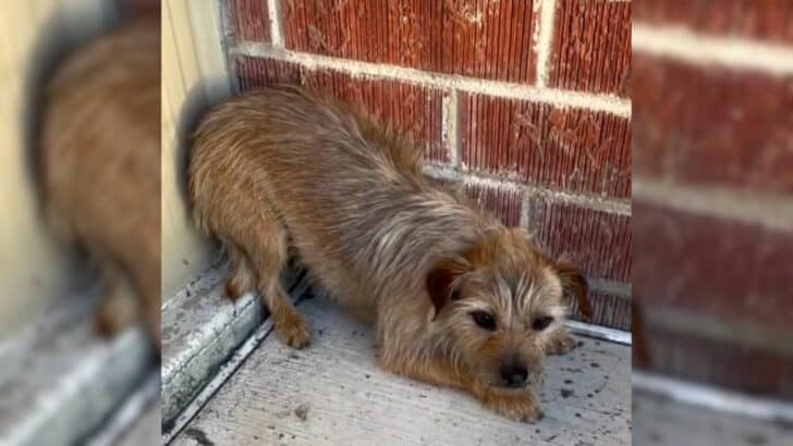Unfortunately, one pup suddenly disappeared, leaving the other scared doggo behind. But, it didn’t take long for him to disappear, too.