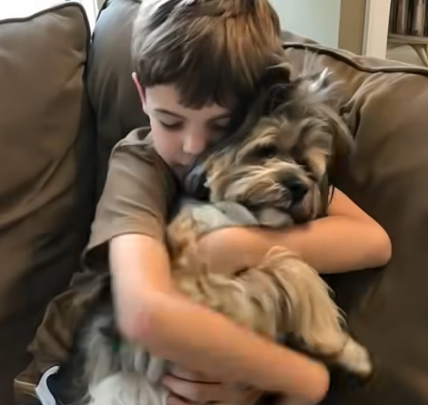 Panic took hold. Andy’s bedroom window was wide open, and terrifying thoughts flooded my mind. Hours later, Daisy returned muddy, exhausted, and alone which only added to our confusion and dread. Then, just after sunrise, a neighbor called to say she’d seen a boy near the woods. We rushed there, and I found Andy curled up under a tree, clinging to Daisy. His first words pierced me: “I thought you ran away because of me.” His attachment to Daisy had led him out into the darkness.