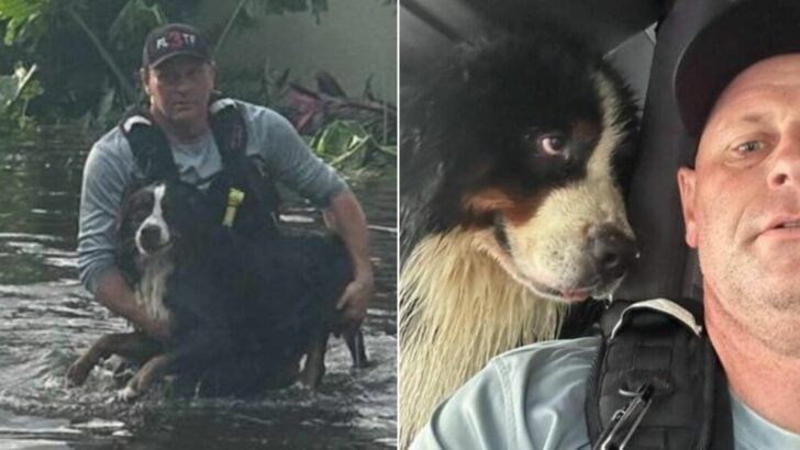 “Check out this beautiful moment of pure gratitude and love! This dog’s eyes say it all as he looks at Cpt. Dusty Mascaro from our HCFR TSAR team after being brought to safety.” HCFR wrote in their Facebook post.