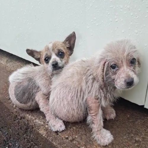 Two small puppies curled up tightly, shivering in the relentless cold rain, trying to find warmth and comfort in each other’s embrace. I couldn’t bear to leave them exposed to the harsh elements.