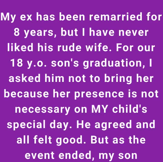 My ex has been remarried for 8 years, but I’ve never liked his wife. She’s always beenold, condescending — the kind of person who walks into a room and makes it colder just by being there. And no matter how much time passed, I couldn’t bring myself to accept her, especially not around my son. When our 18-year-old’s graduation came up — a moment I’d waited for his entire life — I made one request: Please don’t bring her.