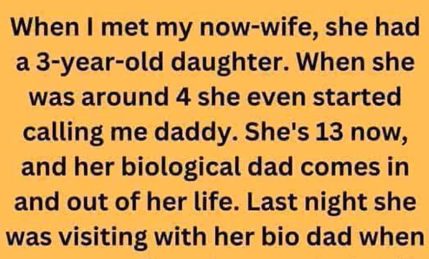 Now she’s 13. She’s growing into this smart, funny, beautiful young girl — and I’ve been there every step of the way. First bike ride. First school performance. Sleepless nights with fevers. Tough talks. Laughter. Tears. All of it. Her biological dad? He drifts in and out of her life like a breeze through an open window — never consistent, never reliable. Just moments. Promises that don’t get kept. A visit here, a text there. And every time, she gets hopeful. And then disappointed.