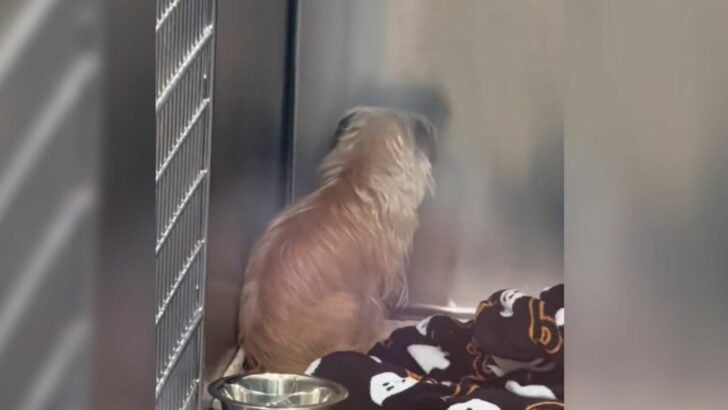 “This happens to dogs after they’ve been in the shelter for a really long time. Tinker is giving up hope that anyone will adopt her. She sits facing the wall for hours,” Dali wrote.