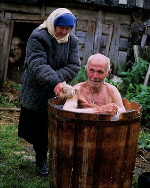 Every Sunday afternoon, rain or shine, Grandpa climbs into the barrel out back with a sigh like he’s settling into a church pew, and Grandma scrubs him down with an old cloth and a bowl of boiled water like it’s a sacred ritual.