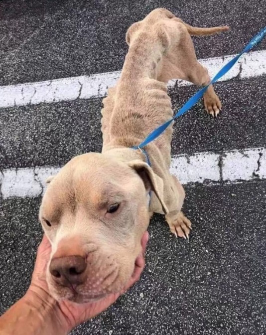In early November 2017, police officers were delivering eviction notices in a neighborhood in Fort Lauderdale, Florida, when they were approached by a group of children. The kids pointed to a cage outside a nearby abandoned apartment. Inside the cage sat Dice, a frail and quiet dog who had been left behind. According to Tracey Godin, co-founder of Feeling Fine Rescue in Loxahatchee, Florida, the apartment’s tenants had moved out and abandoned the dog in the backyard. “They left him there in a crate with no food or water,” Godin explained. “The police asked the children how long the dog had been there, and they guessed it had been at least a week. But honestly, Dice had likely been suffering much longer. You could tell he hadn’t been fed properly for months. That final week without anything just pushed him over the edge.”