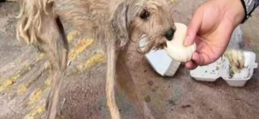 She stood by an old garbage can, hunched over like a shadow of a once proud dog. Her fur was matted into tight, dirty clumps, revealing sharp ribs, and her eyes — the same eyes that once, perhaps, shone with happiness — were now dull, tired and yet… thirsty for life.