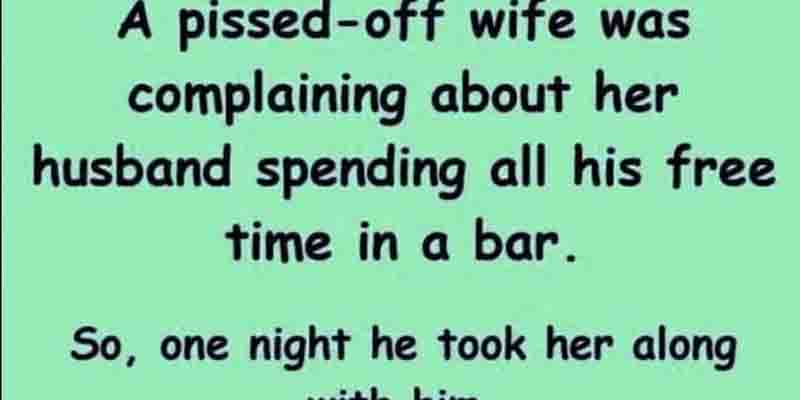 A irate wife complained that her husband spent all of his free time in a pub. So one night, he took her with him. “What’ll you have?” he inquired. “Oh, I do not know. “The same as you, I suppose,” she said. So the husband got a drink and threw it down in one shot.