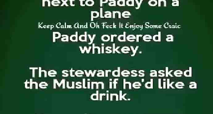 Paddy ordered a whiskey. The stewardess asked the Muslim if he’d like a drink.