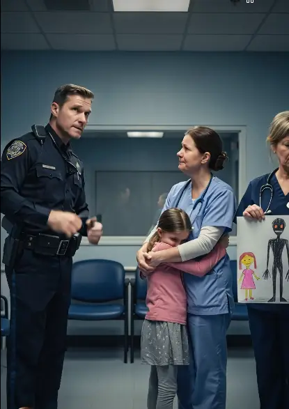 Officer Daniels stood, his manner gentle but firm. “Ms. Taylor, I’m Officer Daniels. We’re looking into a concerning situation involving Emily.” Sarah’s eyes darted frantically around the room, landing on the drawing. Her face drained of color.