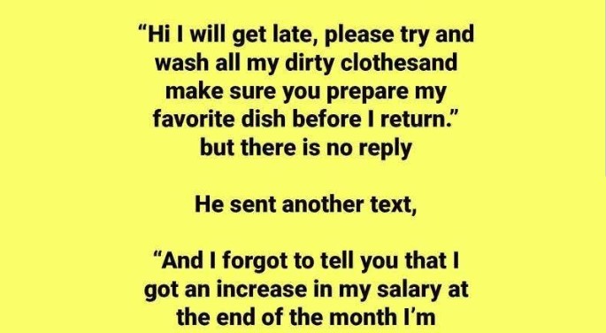 Often fueled by lighthearted banter and inside jokes, marriage is full of humorous moments. Frustrated by his wife’s lack of response to his text, one husband chose to use comedy to draw her notice. He messaged her, requesting laundry and dinner, but received no reply. So, he followed up with, “I got a raise! I’m getting you a new automobile! His wife responded enthusiastically, “OMG, really?” I simply wanted to confirm you received my initial message, he said.