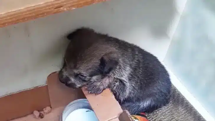 She wrapped the baby in a blanket and kept her warm. She breathed a sigh of relief after she noticed that the puppy’s diarrhea had stopped.