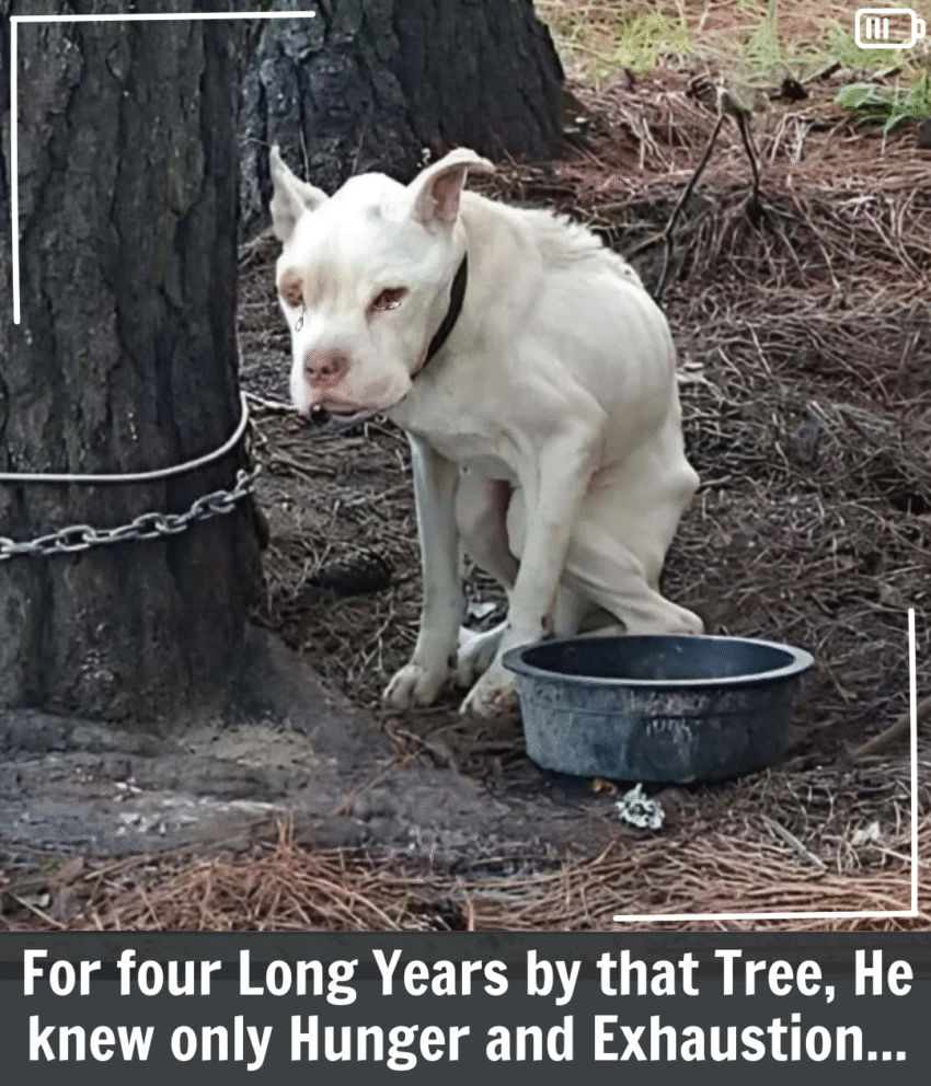 For many years, tucked away on a lonely farm in central Georgia, a young puppy lived a life no animal should ever have to endure. He had been tied to a tree, left to the mercy of the scorching summer sun, the relentless rains, and the bone-chilling winds.