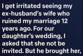 I still get irritated every time I see my ex-husband’s wife—the woman who helped destroy my marriage twelve years ago. For our daughter’s wedding, I asked that she not attend. But he showed up with her anyway, saying, “Wherever I go, my wife goes.” I confronted them, and she quietly stepped away without a fight.