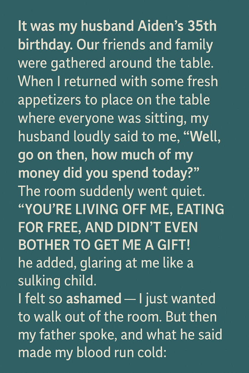He stood in front of our guests, puffed with that smug confidence he wore like a second skin, and joked, “How much of my money did you spend on today?” Then, louder this time—loud enough to make sure the words hit every ear in the room—“You don’t even have a job. Or a baby.”