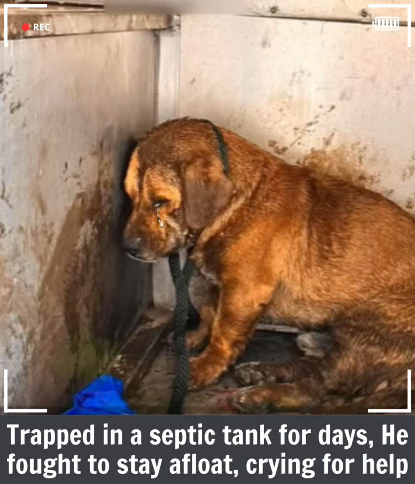 When rescuers first laid eyes on Andy, they weren’t sure if he would survive. He had endured something no dog should ever face — trapped inside a septic tank for two long days, fighting to stay afloat. His paws were raw from endless attempts to claw his way out.