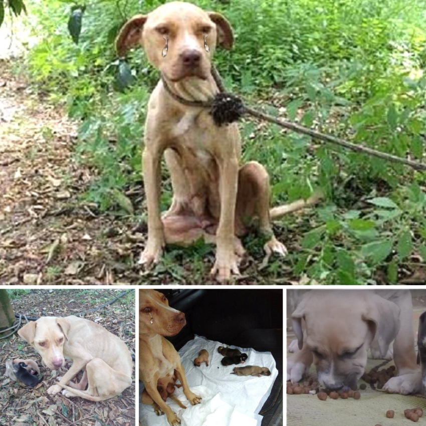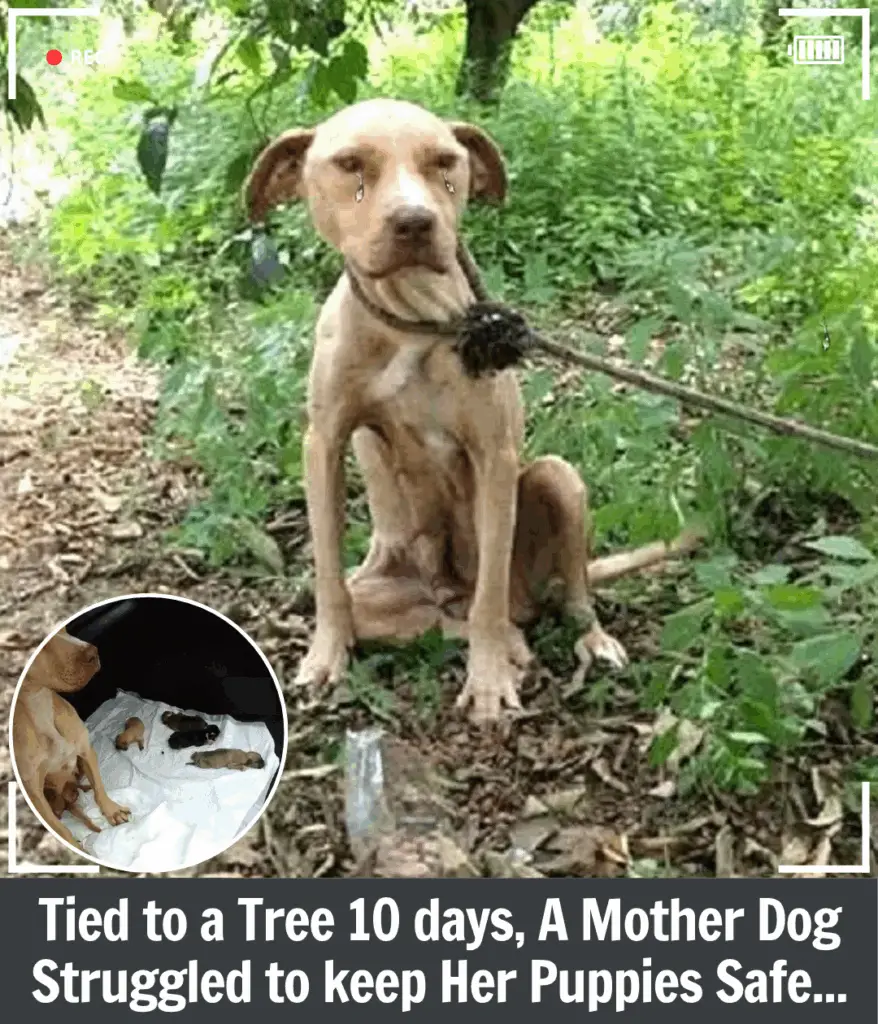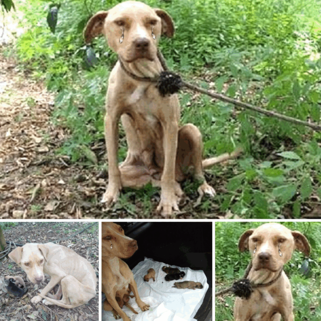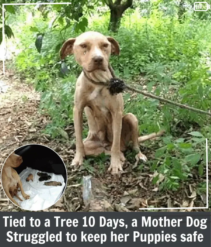There, tied to a tree with a rope cutting into her neck, was Lara. Her body was gaunt, her ribs protruding beneath her thin fur. Her eyes, once full of warmth and trust, were now dull with exhaustion. But beside her, curled up against her frail frame, were her tiny puppies. Miraculously, three of them were still alive, nuzzling against their mother for warmth.