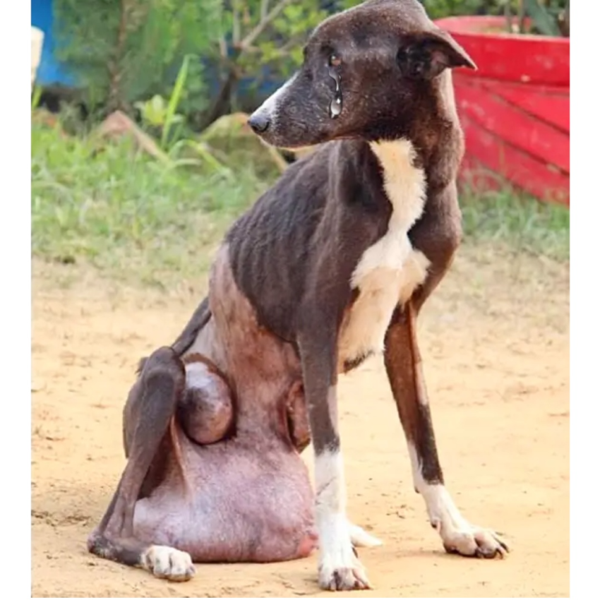Upon arrival, the medical team sprang into action. Midnight was severely malnourished, his body nothing more than skin and bones. His tumor, a massive testicular growth, was draining the life from him.