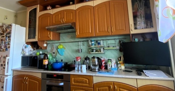 For this very purpose, they turned to a specialist, a designer, who could lead them to the right path and made their ideas reality. Thanks to the good layout, changes to the kitchen were not required. The walls are decorated with the textured wallpaper.