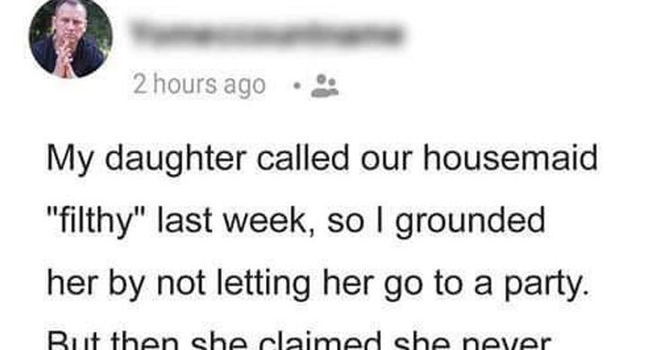 When his daughter did that, the dad felt bad about herself. He stood up for her and told her that if she did anything else wrong to their housekeeper, she would get in trouble, which she wouldn’t want.