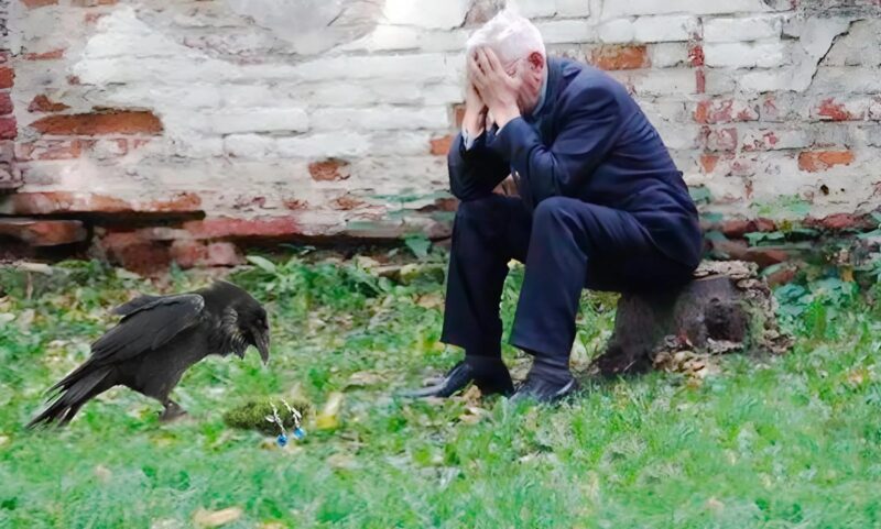 This man, who had recently lost his wife, fed a crow every day. After several months, the crow returned with something shiny in its beak. What he saw greatly surprised the man.