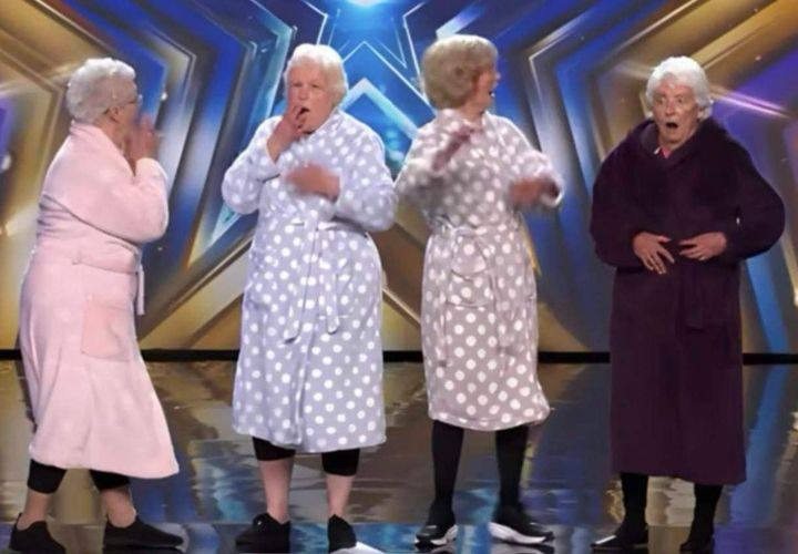 🎠4 women in warm dressing gowns came out on the BGT stage.