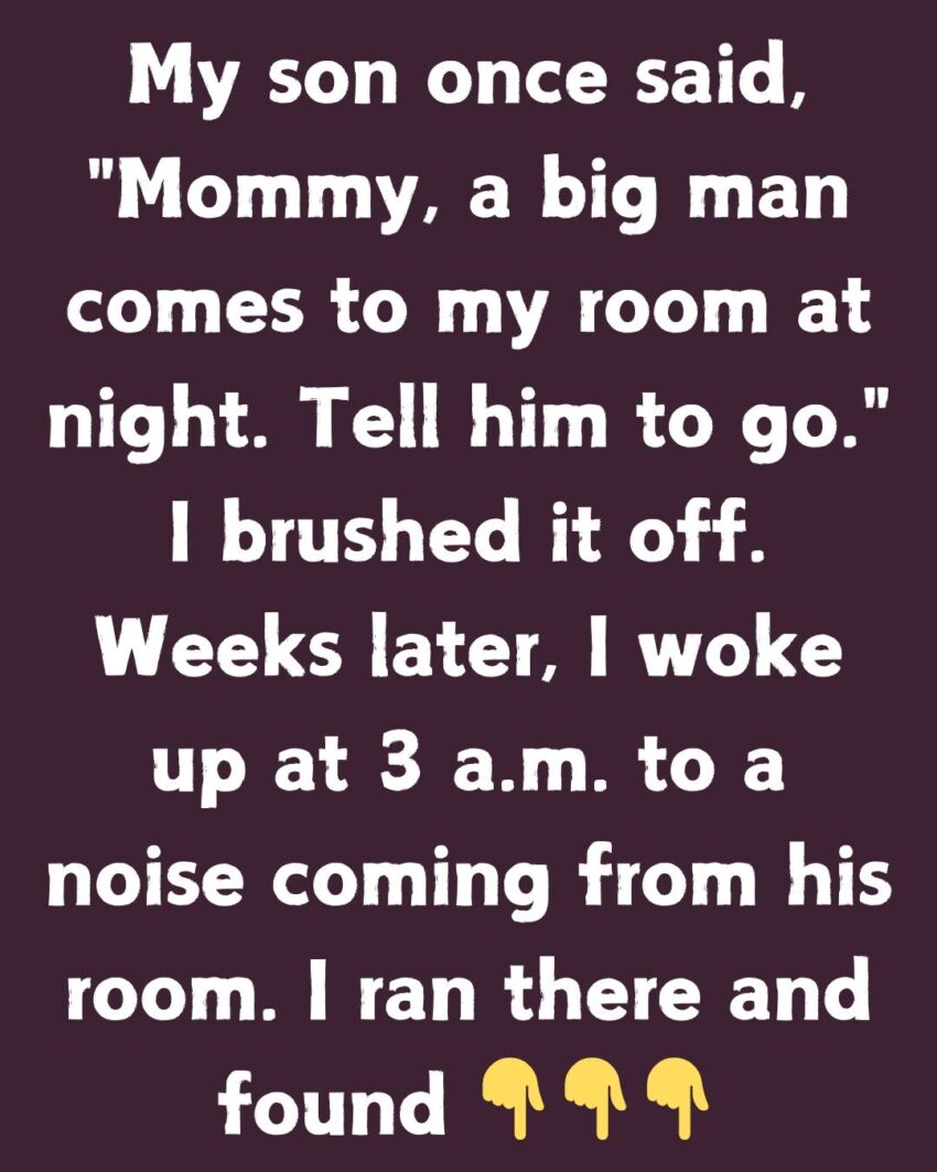 One day my son told me, “Mom, a big man in my room comes to my room at night.” I shredded it and told him to tell the man to leave. A few weeks later I woke up at 3 am for some noise in his room. When I fit, in I found him sitting on the bed, looking out the window, and talking to himself. I looked out and saw what looked like a character in an illuminated window across the street.